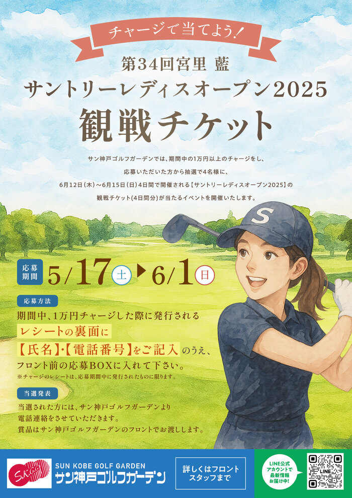 当選発表 当選された方には、サン神戸ゴルフガーデンより直接電話連絡をさせていただきます。
