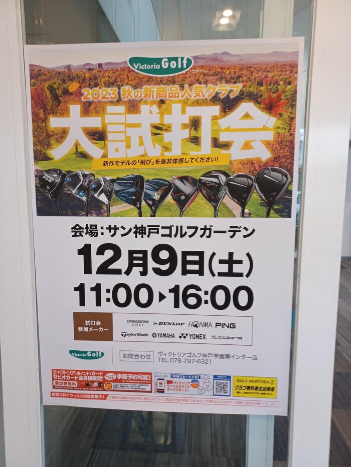 12月9日(土)11:00~16:00ヴィクトリアゴルフ主催の試打会を開催します。