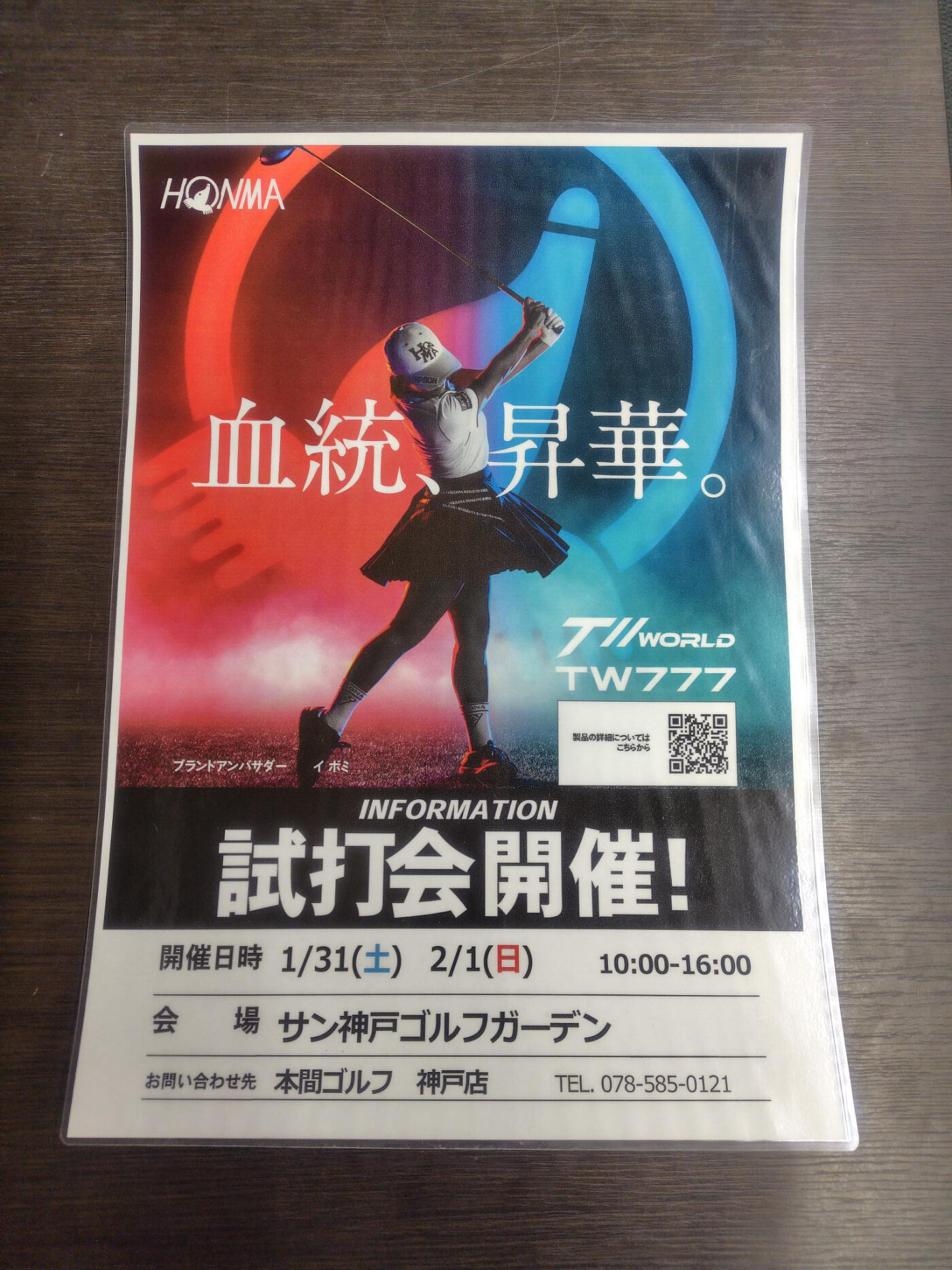 本間ゴルフ主催の試打会が開催されます 1月31日(土)・2月1日(日) 10時~16時 ※10時から準備が出来次第 サン神戸ゴルフガーデン 1階 1番打席 たくさんのご参加お待ちしています。
